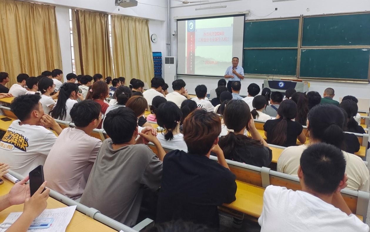 金秋九月,骄阳璀璨,世界杯体育官方网站2024级新生带着憧憬与梦想如约而至。为帮助2024级新生正确了解所学专业的发展前景和就业趋势,增强新生学习的兴趣和信心,尽快适应大学学习生活,9月11日—12日,该院分专业召开新生见面会暨专业介绍会。校党委委员、副校长范家茂,工程造价、建设工程管理、建筑工程技术、建筑装饰工程技术、环境艺术设计5个专业400多名新生以及各专业教师参加了此次专业介绍会,会议由该院副院长邓勋主持。