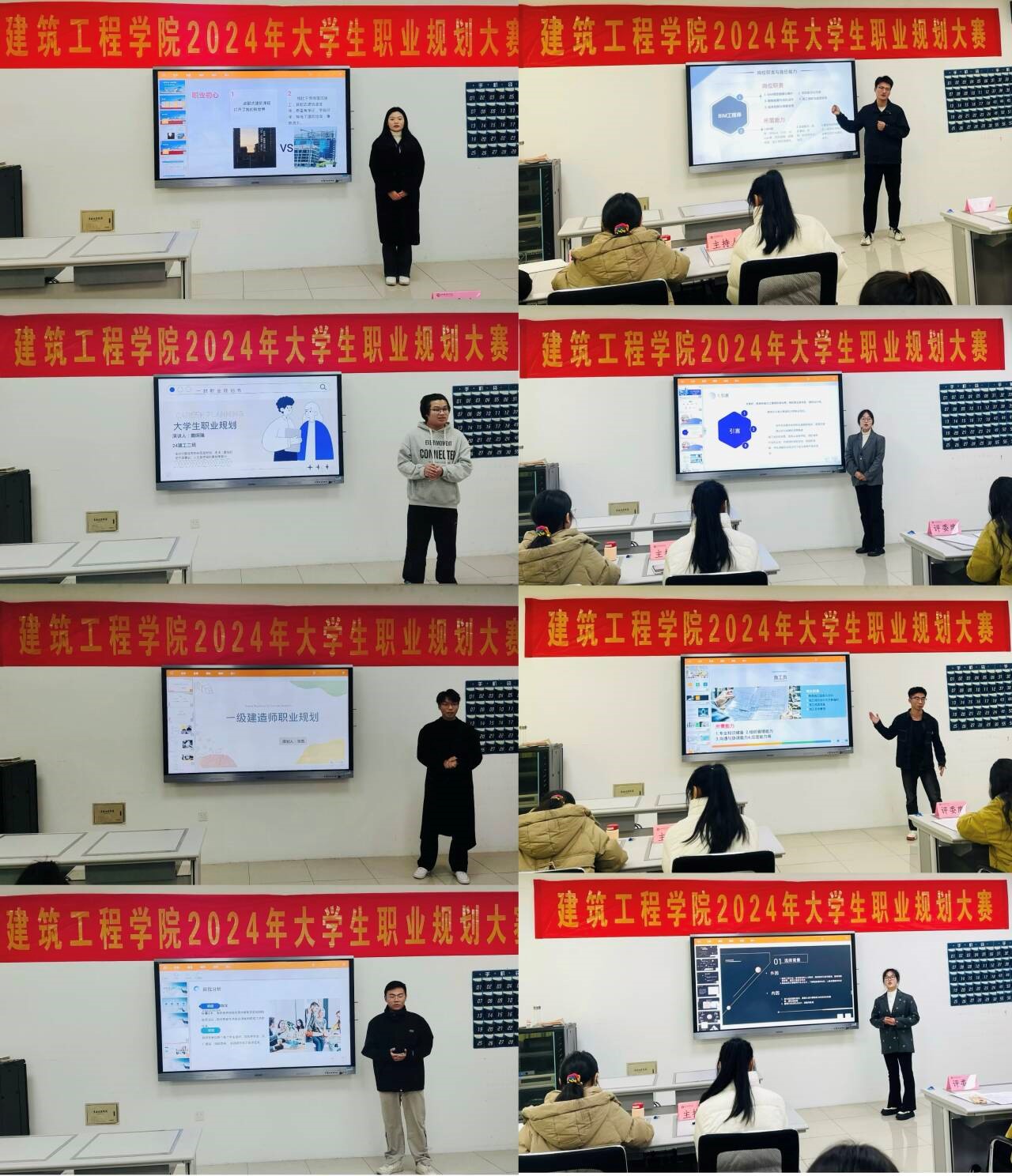 为帮助学生树立正确的就业观念,明确职业方向,提升职业规划能力,为未来的就业创业之路打好坚实基础,11月26日下午,世界杯体育官方网站2024年大学生职业规划大赛决赛在建工楼302多媒体教室成功举办。学院教学办主任胡秀俊、工程造价教研室主任黄军福、专职辅导员昌逸文、李小龙、李文婧、王瑶担任本次大赛评委,大赛指导教师和在校班级学生代表现场观赛。