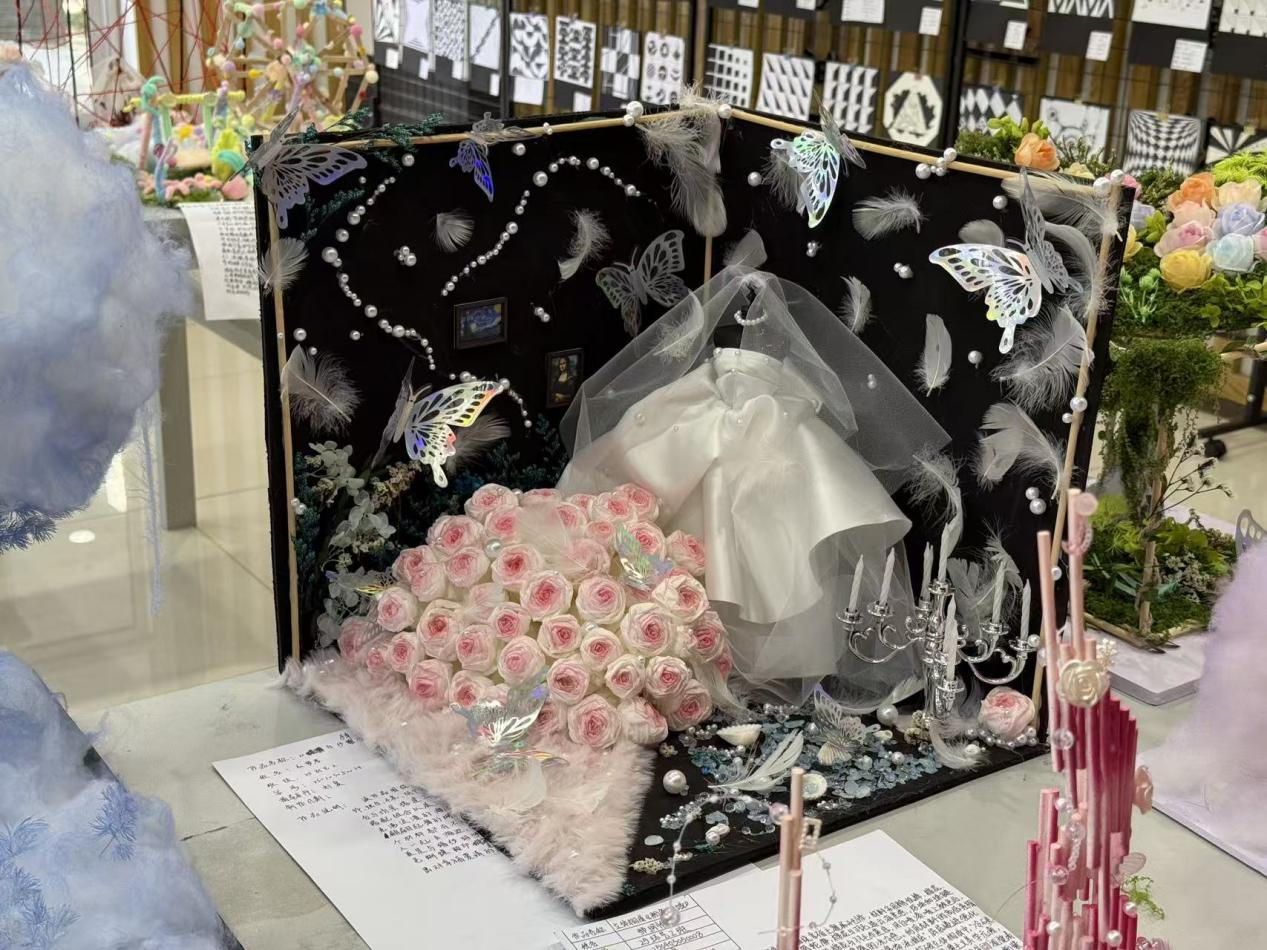 走进展厅,一系列富有创意的视觉作品映入眼帘。平面构成作业以点、线、面的抽象组合探索形式规律;色彩构成作品通过色调与情感的碰撞,展现了对颜色语言的初步掌握;立体构成部分则更具互动性,学生们运用纸板、木质等综合材料,将二维构思转化为三维实体,呈现出对空间与结构的独特理解。