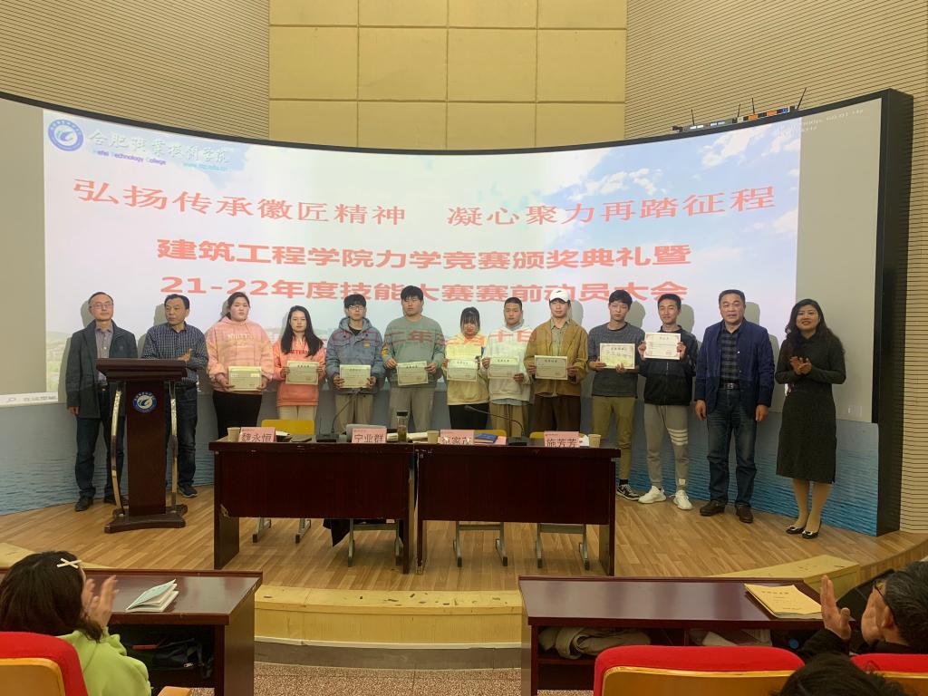 为大力弘扬传承徽匠精神,不断完善和创新“立足校企融合,传承徽匠精神的建筑类专业特色人才培养”,鼓励和表彰我院在安徽省大学生力学竞赛中获奖的同学及指导教师,为积极备战省校技能大赛的同学及指导教师加油鼓劲,3月10下午,世界杯体育官方网站在鼓山校区图书馆二楼报告厅举行安徽省大学生力学竞赛颁奖典礼暨2021-2022年度安徽省职业院校高职组技能大赛赛前动员会。