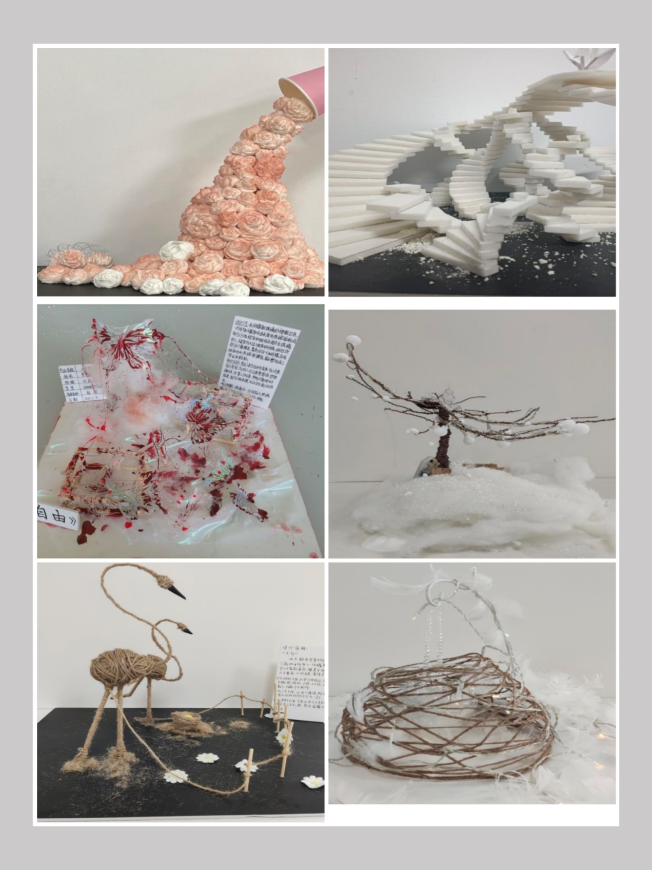参展作品富有蕴意、用材多样、精致秀美,充分展现和表达了同学们的所思所感所悟,赢得了观展师生的一致赞叹。