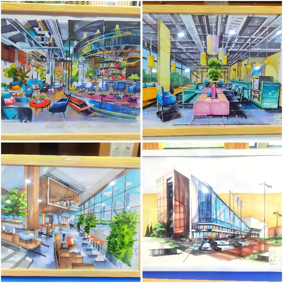 展览现场,作品形式丰富多样,涵盖了室内效果图、建筑外观图、装饰细节图等。既有写实细腻,逼真还原空间质感与光影效果的作品,也有大胆运用夸张色彩与独特视角,充满创意与个性的画作。通过分析不同时间段、不同环境下的光线变化,用色彩和阴影塑造空间氛围,使二维图纸呈现出逼真的三维效果。