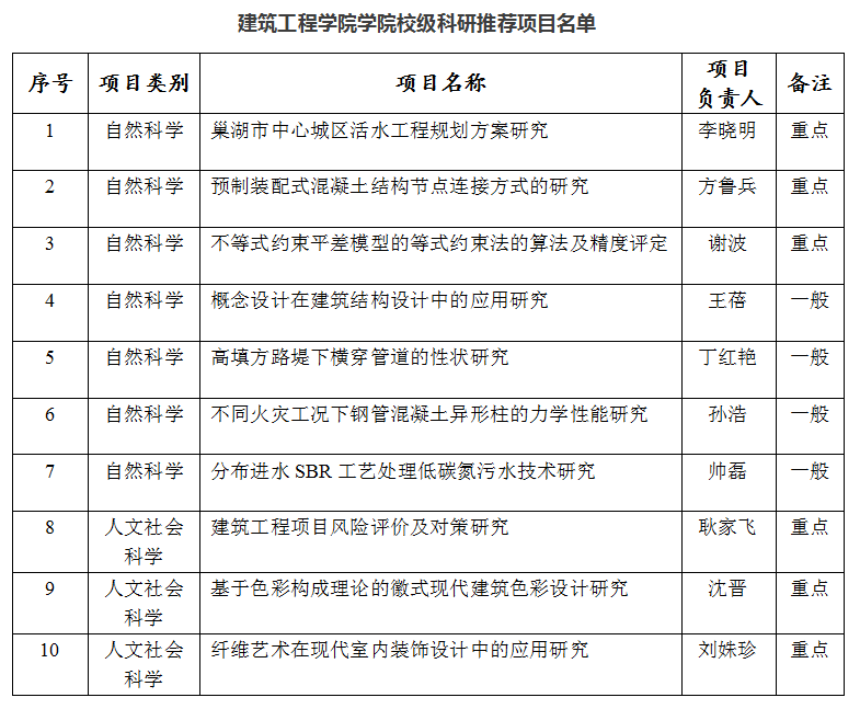 根据《世界杯体育官方网站关于开展2019年度校级科研项目申报工作的通知》(合职院教〔2018〕40号)文件精神,世界杯体育官方网站积极组织学术委员会成员对教师申报的2019年度高校自然科学和人文社科研究项目进行了评审。确定立项推荐项目公示如下: