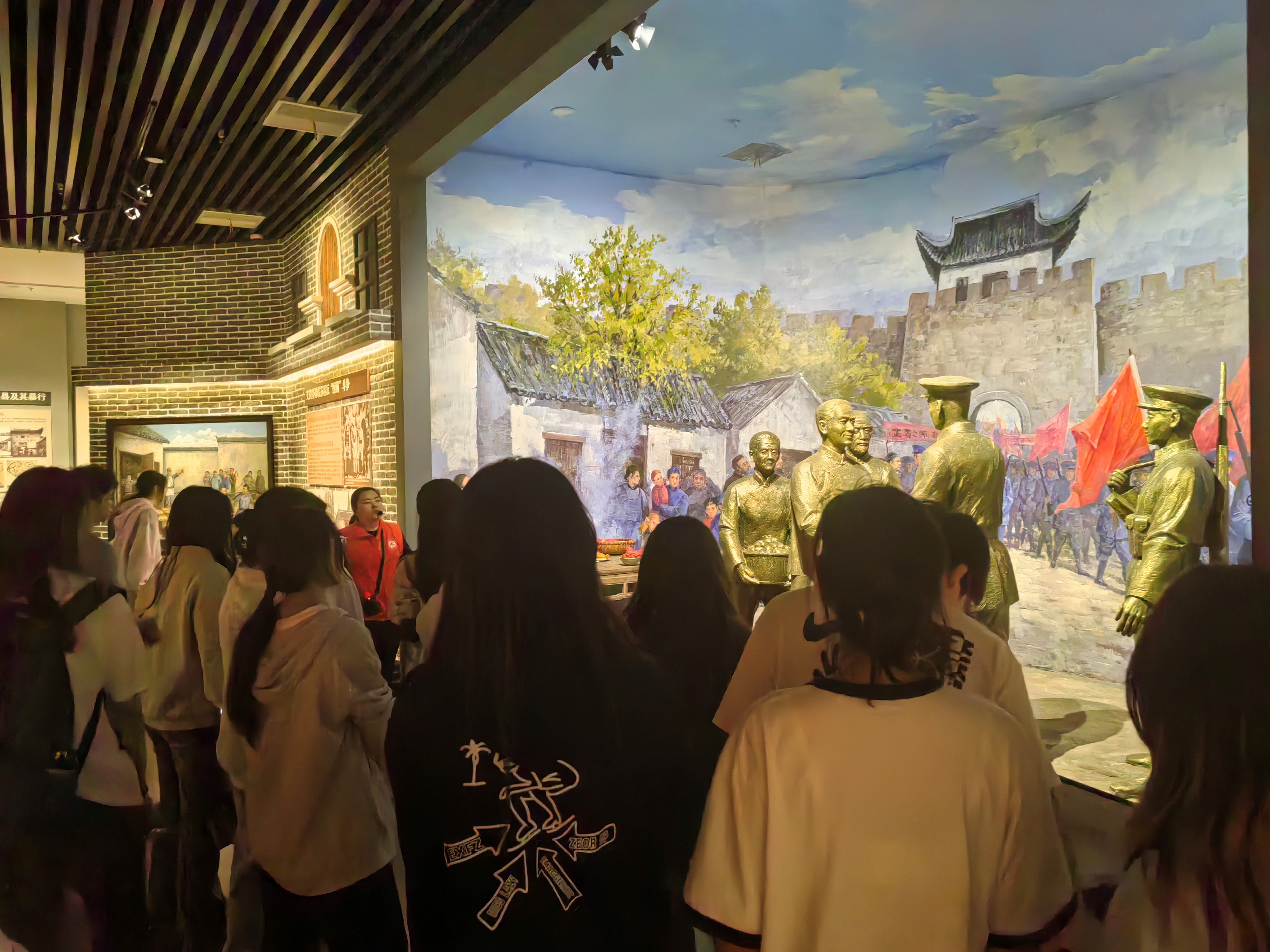 在“巢湖革命历程”主题展厅,通过博物馆工作人员的讲解,全体党员发展对象系统学习了巢湖地区党组织在中国共产党的创建和大革命时期、土地革命时期、抗日战争时期以及解放战争时期团结群众、艰苦奋斗的光辉历程,深刻领会到了先辈们为了民族独立和人民解放,不惧牺牲、不怕困难的革命精神。尤其是新四军打响“东进抗日第一枪”的战斗场景和“渡江第一船”渡江场面的生动再现,更是让同学们直观感受到党同人民群众的血肉联系。展柜里陈列的新四军《三大纪律八项注意》手抄本等文物,充分展现了革命先辈“不拿群众一针一线”的廉洁作风。
