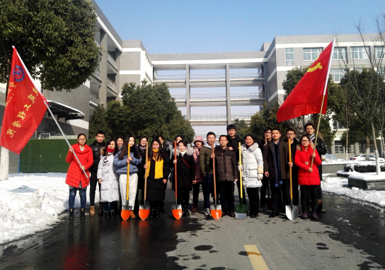 集中学习后,大家来到实验实训楼东面,铲除道路上的积雪,以实际行动践行学习贯彻十九大精神,履行党员克已奉公、多做贡献的义务。