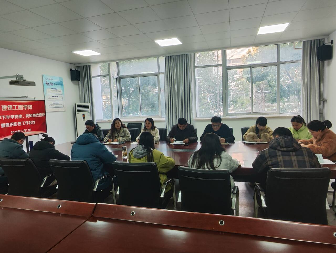 为深入贯彻落实学校党委工作部署,系统总结学院年度党建和党风廉政建设工作,进一步压实责任、明确方向,世界杯体育官方网站于12月17日下午在建工楼213会议室,组织召开了2025年下半年党建暨党风廉政建设工作专题会议。学院党总支班子成员、各党支部书记及委员参加会议。会议由学院党总支副书记施芳芳主持。