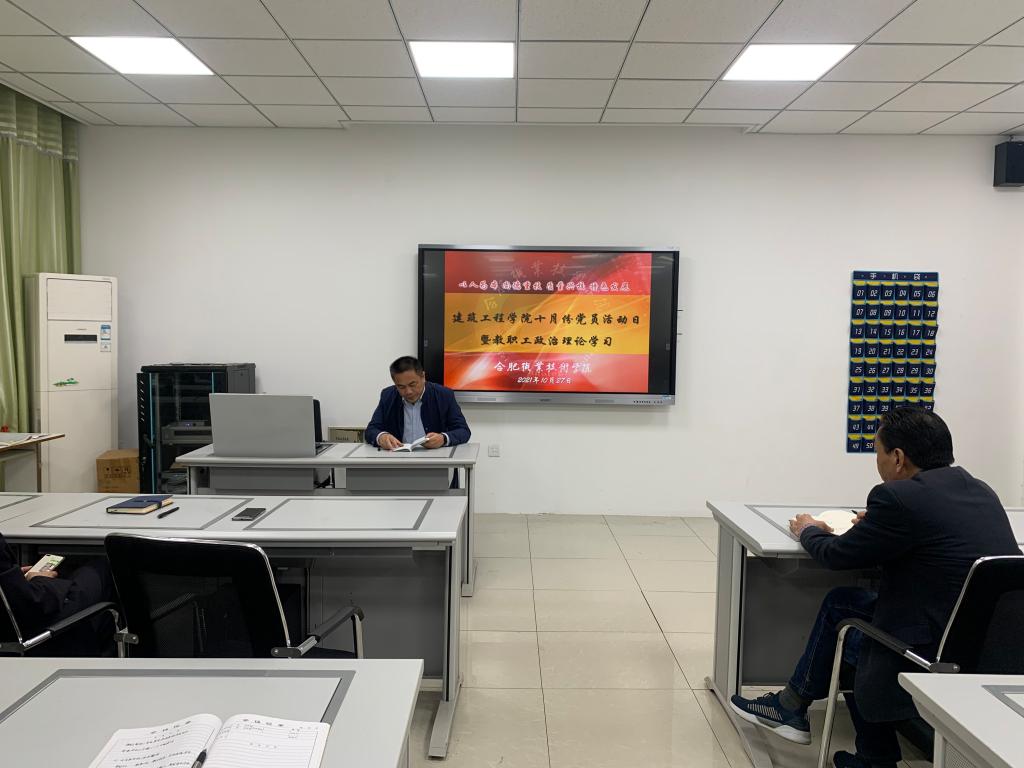 10月27日下午,我院党总支在建工楼301组织开展十月份党员活动日暨教职工政治理论学习,活动由学院党总支书记宁业群主持。