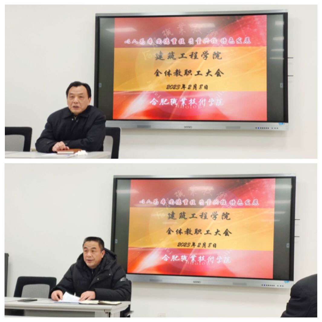 院长范家茂从 “党建引领、教学改革、内涵建设、育人实效”四个方面总结了过去一年的学院工作。随后,他以“2023年我们怎么干”为题,从四个方面对同志们接下来的工作提出要求:一要坚持加强学习,不断提升技能;二要坚持问题导向,用心服务师生;三要坚持创新驱动,谋求特色发展;四要坚持底线思维,确保行稳致远。