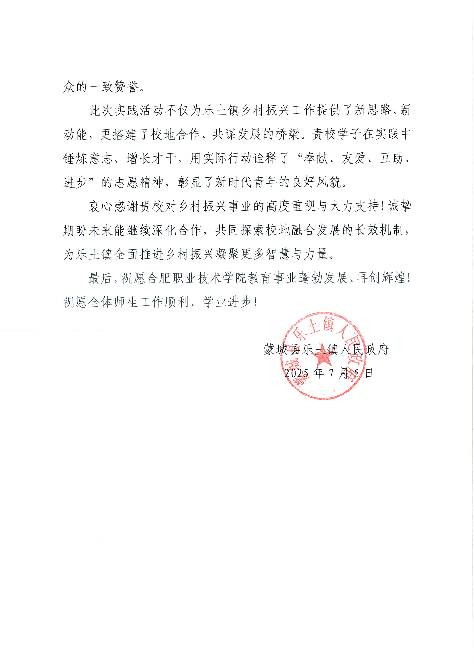 未来,合职院“砼心共筑”乡村振兴实践团将持续关注乐土镇发展,深化调研成果应用,并探索拓展和美乡村的内涵建设和日常管护、村集体经济发展、房屋防灾减灾风险防控等更多元化的服务内容,建立长效服务机制,努力为绘就乡村振兴的壮美画卷贡献持久青春力量。(供稿:金琼琼 初审:施芳芳 审核:丁怡琴)