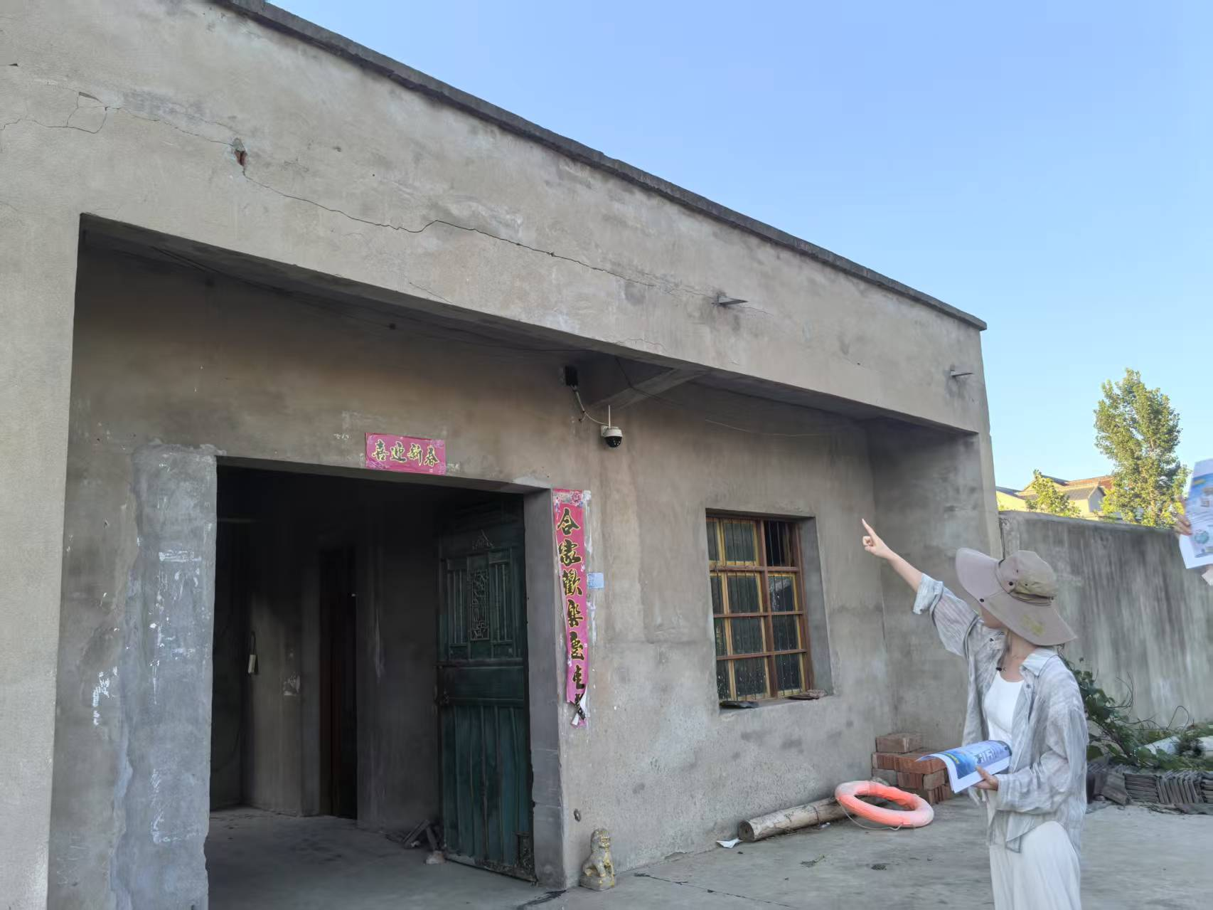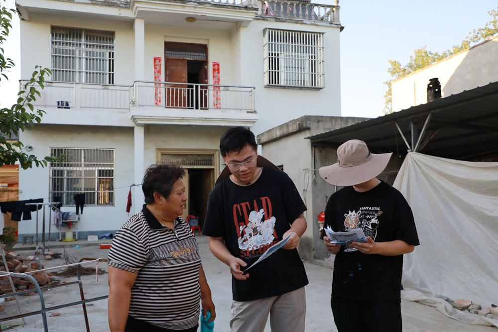 实践团发挥建筑类专业优势,将建筑防灾减灾知识送到村民家门口。他们精心编制并现场发放了图文并茂、通俗易懂的《农村自建房防灾减灾宣传画》100余份,内容涵盖地震、高温火灾等常见灾害的房屋应对措施。在陈营村会议室内,队员们通过科普宣讲和现场答疑,用“接地气”的语言向村干部和村民普及灾害预警识别、应急避险与自救互救技能。实践团还在村干部带领下,走访查看了部分老旧房屋,进行简易安全隐患排查示范,提醒村民关注墙体裂缝、屋顶渗漏、电路老化等问题,有效提升了村民的安全防范意识和防灾减灾能力。