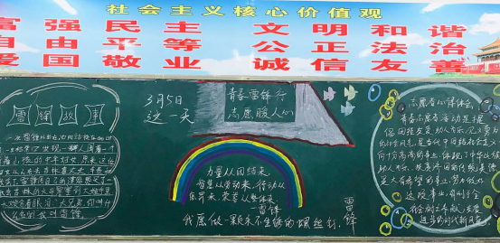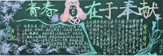 通过这次主题黑板报大赛,使同学们进一步理解了雷锋精神的精髓,更好地向雷锋学习,以自己的实际行动去实践雷锋精神,在同学中营造团结友爱的和谐氛围。教育和引导学生用为人民服务的人生观指引人生,为进一步推动我校的精神文明建设,创建健康文明校园作出自己应有的贡献。