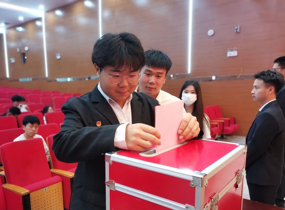 第二次全体会议,与会代表审议并通过《关于世界杯体育官方网站第七届学生会工作报告的决议》、《世界杯体育官方网站第八届学生会主席团成员选举办法》。经投票选举,王子琳、赵浩男、余铭悦三位同学当选新一届学生会主席团成员,王子琳代表新一届主席团做了发言。