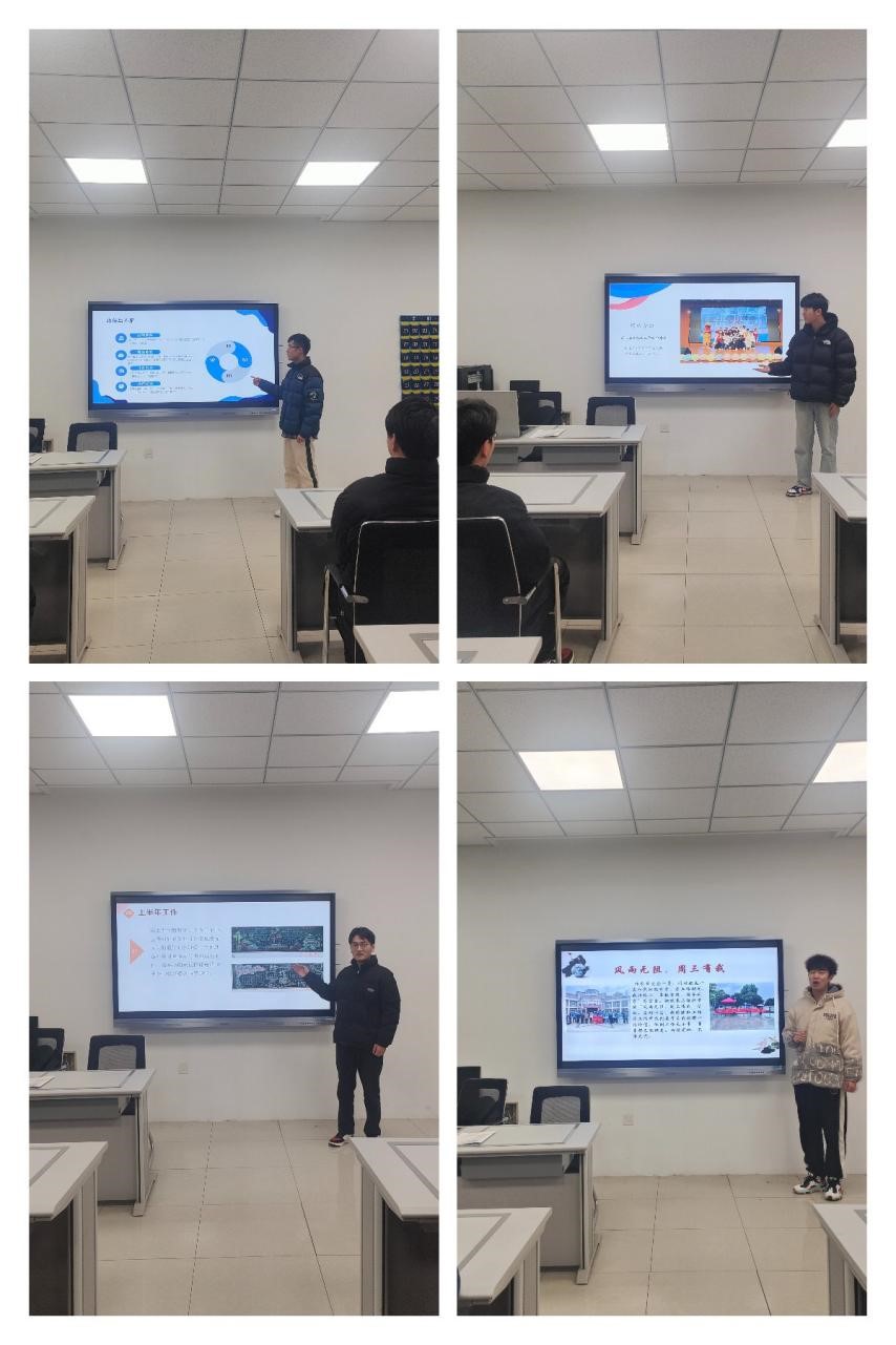 首先,学生会主席团对本学期学生会举办的各项活动进行了梳理,三位主席分别就自己分管的工作做了总结汇报,同时指出工作中存在的问题和不足,以及下一学期工作的初步计划和打算。随后,各部部长也以PPT的形式对本部门一学期的工作情况做了汇报,总结了工作上的得失。