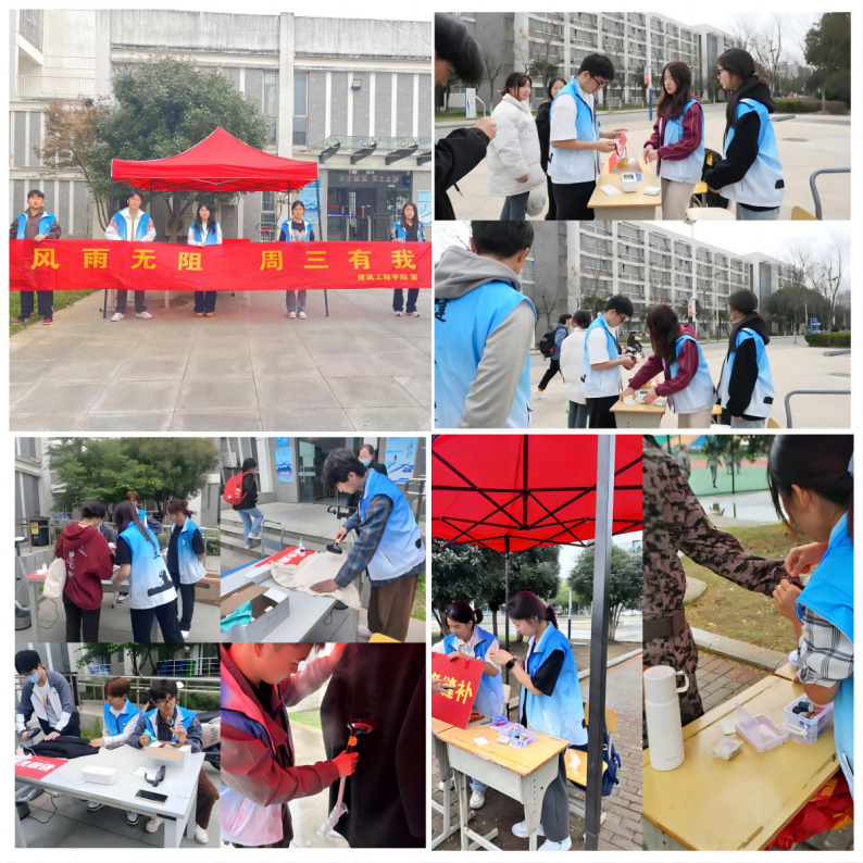 “风雨无阻 周三有我”是世界杯体育官方网站志愿服务的特色品牌。本活动自2020年3月正式开展,至今已有4年。“建小志”志愿团队坚持每周三中午为鼓山校区师生开展各项志愿服务,团队成员涵盖学生党员、团员、入党积极分子和学生干部等。活动遵循“从小事做起,从实际出发”的原则,致力于服务师生日常校园生活所需。现有服务项目包括手机贴膜、衣物缝补、眼镜清洗和衣服熨烫等。该活动已获评2023年安徽省高校学生会组织“我为同学做实事”集中活动月暨项目交流展示活动“优秀项目”。
