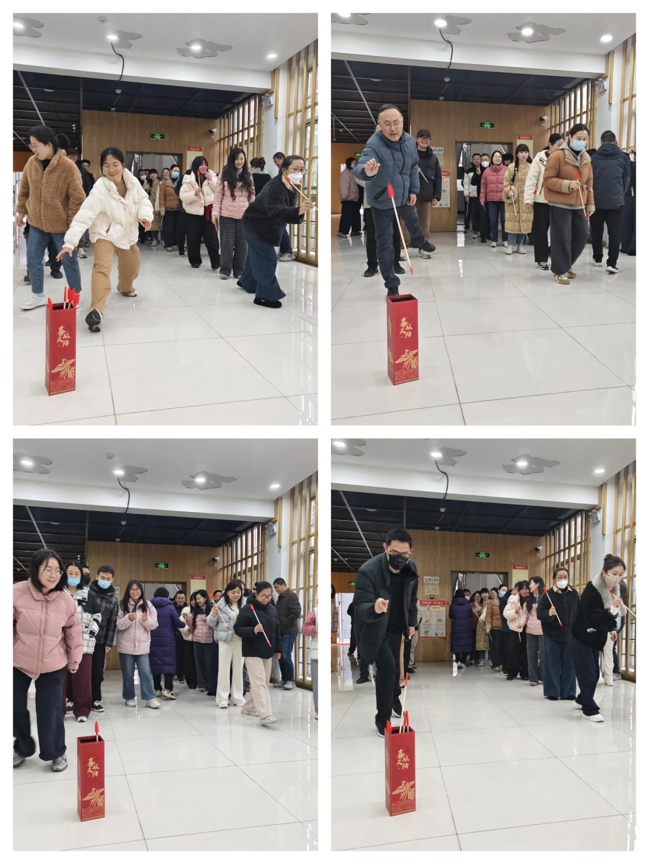 兼具传统韵味的“投壶”项目画风一转,考验教职工的精准度与心态。只见参赛教师凝神静气,手持箭矢瞄准壶口,手腕轻抖间,箭矢精准入壶的瞬间,总能引来全场喝彩;即便未能命中,大家也笑着摆摆手重新调整,充分展现了“享受过程”的运动心态。