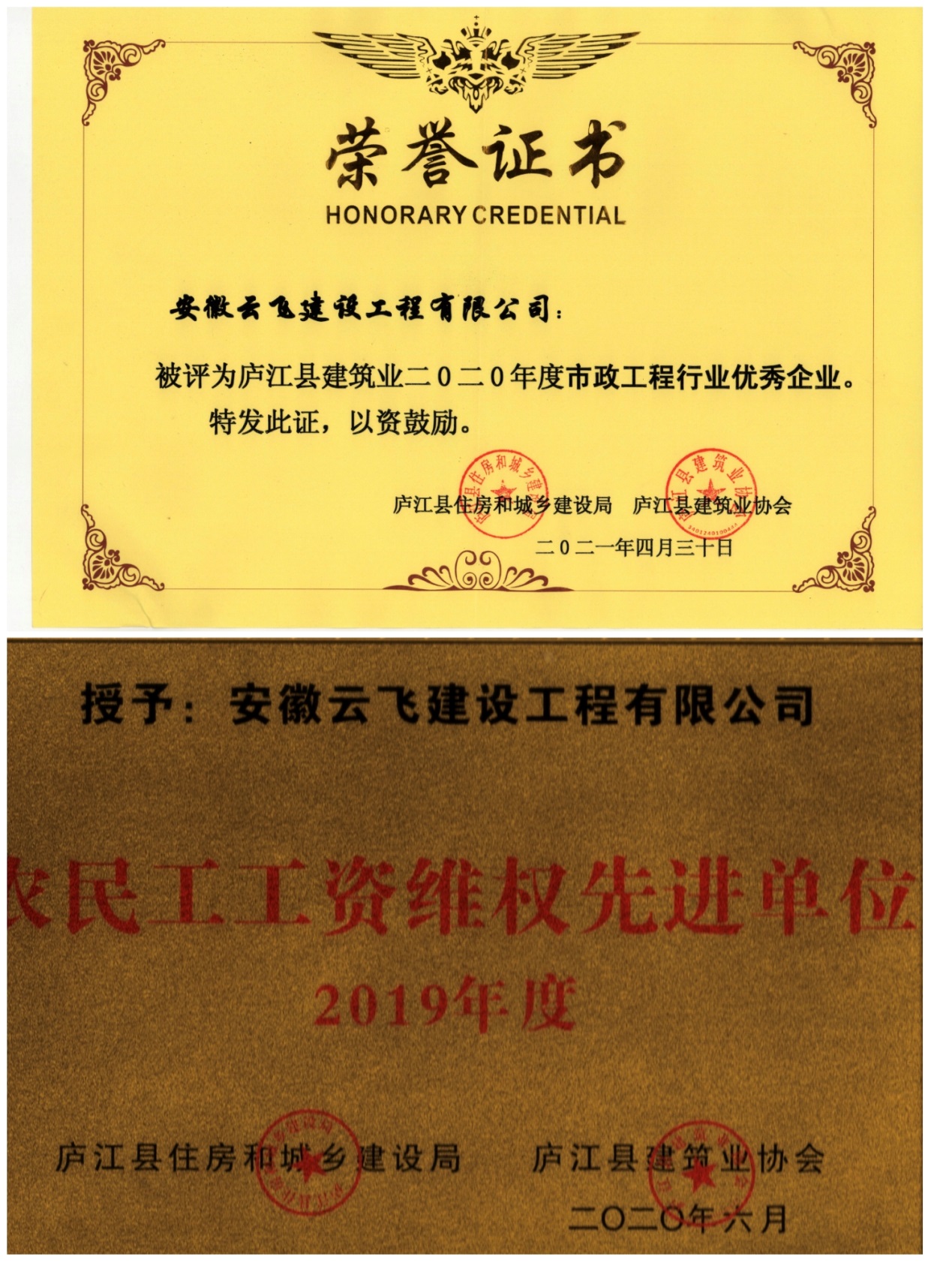 近年来,企业累计产值破亿元,累计纳税约500万元。2019年度和2020年度被评为庐江县白湖镇“纳税先进单位”,2021年度被评为庐江县白湖镇“税收贡献十强企业”。在徐云龙的带领下,企业为社会创造了价值,提供了劳动力就业机会,被庐江县住建局评选为2019年度“农民工工资维权先进单位”、2020年度县市政工程行业“优秀企业”。