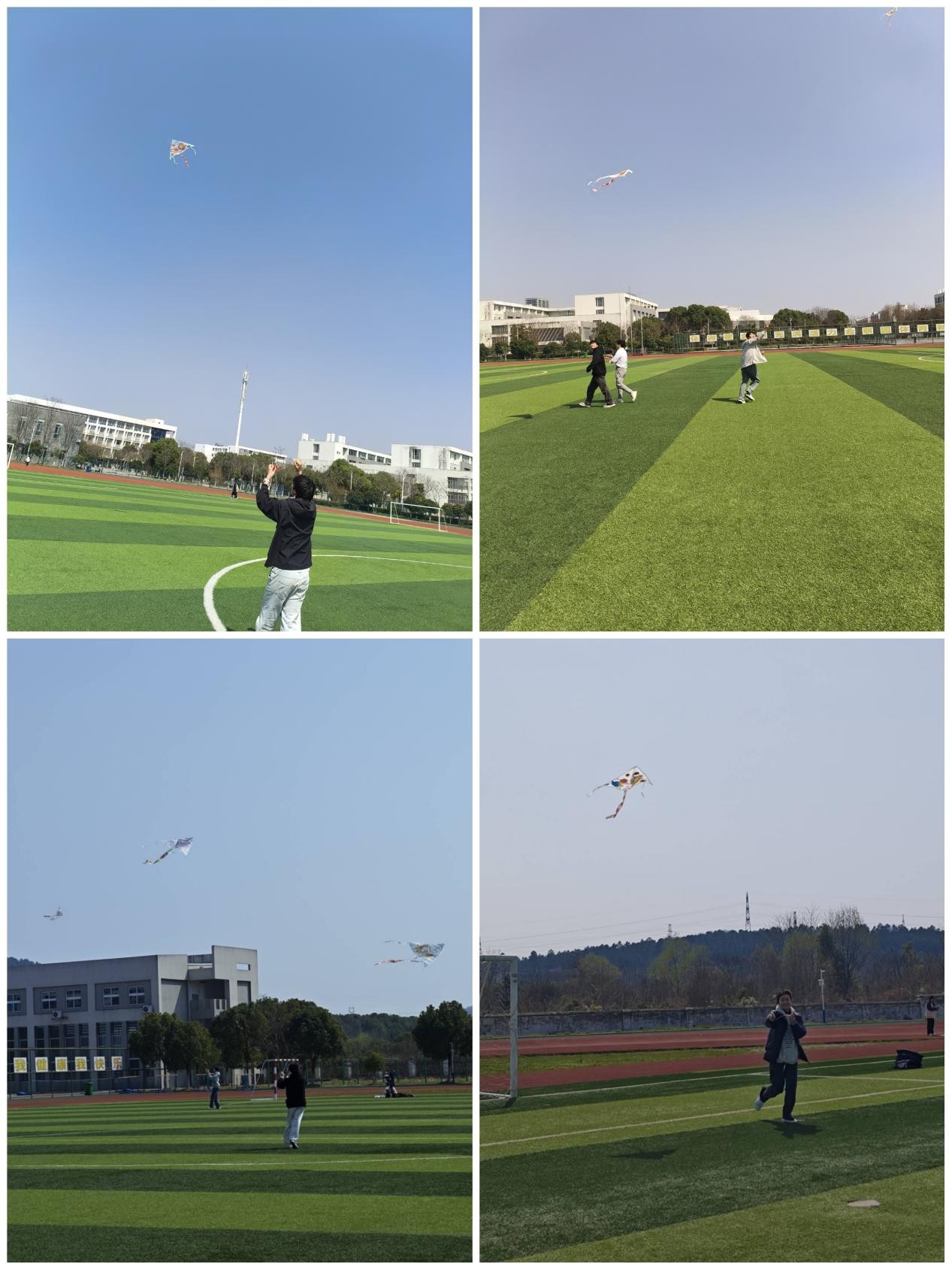 绘画环节结束后,学生们分组协作放飞风筝。他们或奔跑牵引线轴,或调整风筝角度,形态各异的风筝在春风中陆续升空。活动过程中,欢笑声与加油声此起彼伏,不少路过的学生驻足拍照,成为操场上一道亮丽的风景线。参与此次活动的学生纷纷说到,“风筝飞起来了感觉自己的心灵也飞向了蓝天,自由又惬意。”