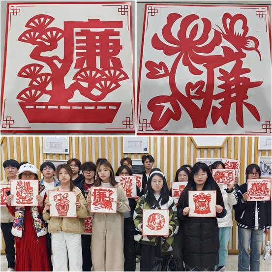 在创作过程中,同学们互相交流、互相学习,分享剪纸技巧和创意灵感。凭借自己的热情和创造力,完成了自己的各具特色的廉洁主题剪纸作品。活动现场充满了欢声笑语,同学们在动手创作的同时,也感受到了廉洁文化的魅力。