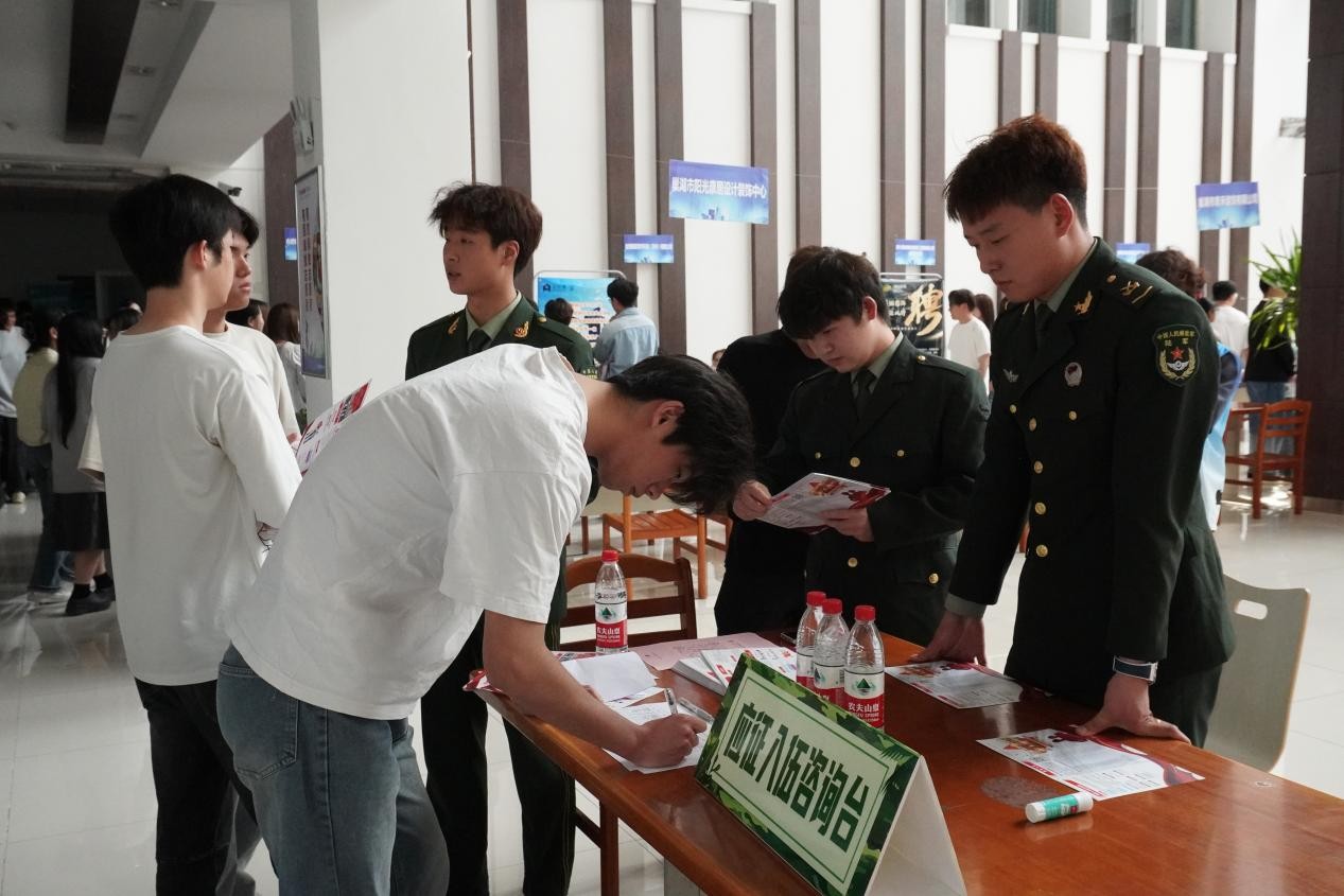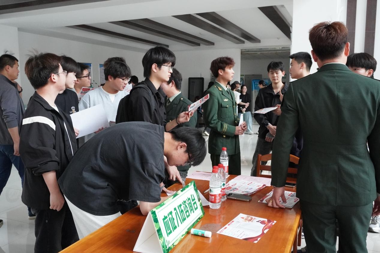 为鼓励大学生积极参军应征入伍,提高兵员征集质量,推进国防和军队现代化建设,4月23日下午,世界杯体育官方网站学工办在学院2025年春季就业实习双选会现场设立应征入伍咨询台,开展征兵政策宣传活动。